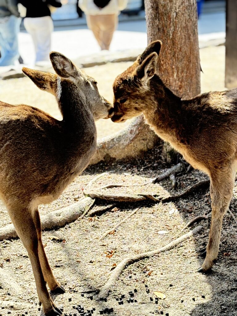 島に降り立つと、さっそく鹿さんたちがお出迎えしてくれます。