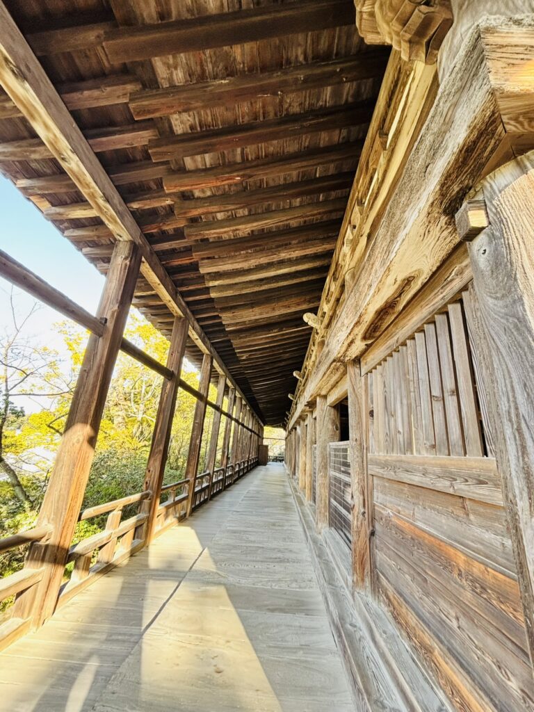 東回廊: 朱色の柱が続く光景は、歩いているだけで心が浄化されるようです。
